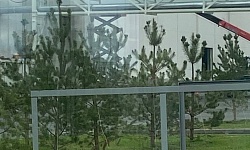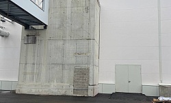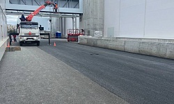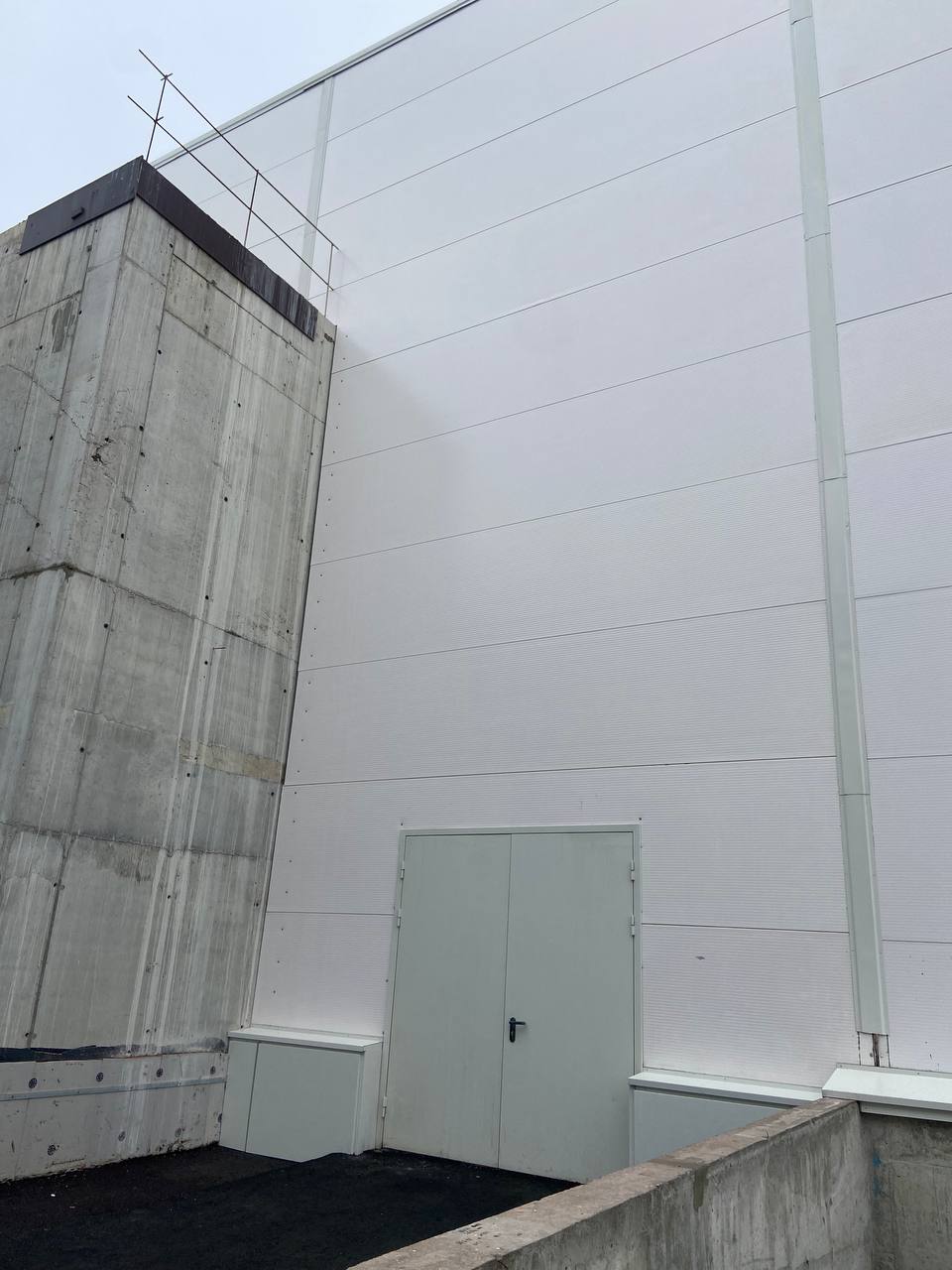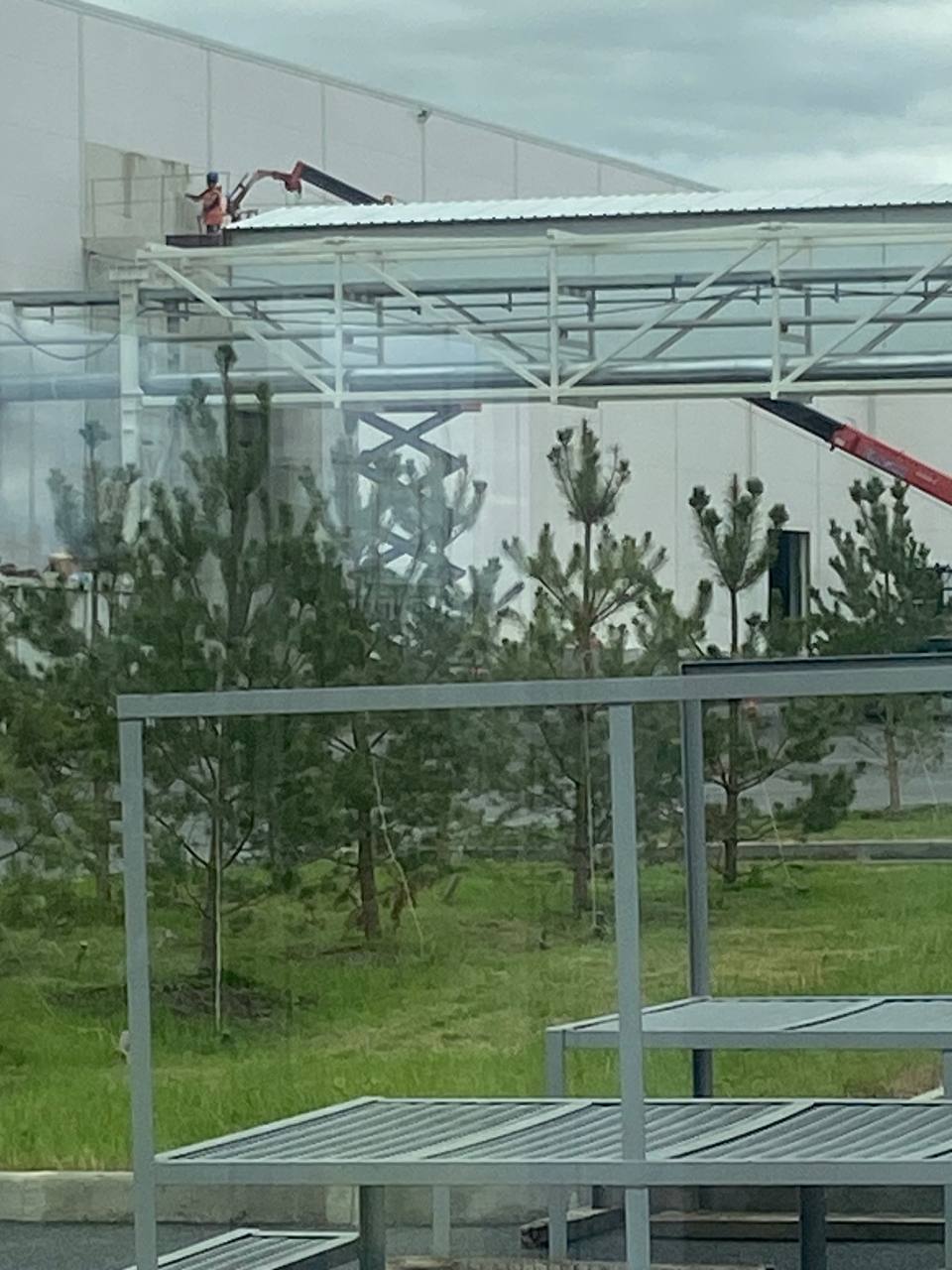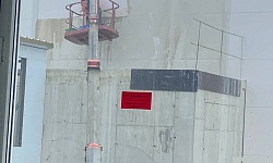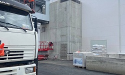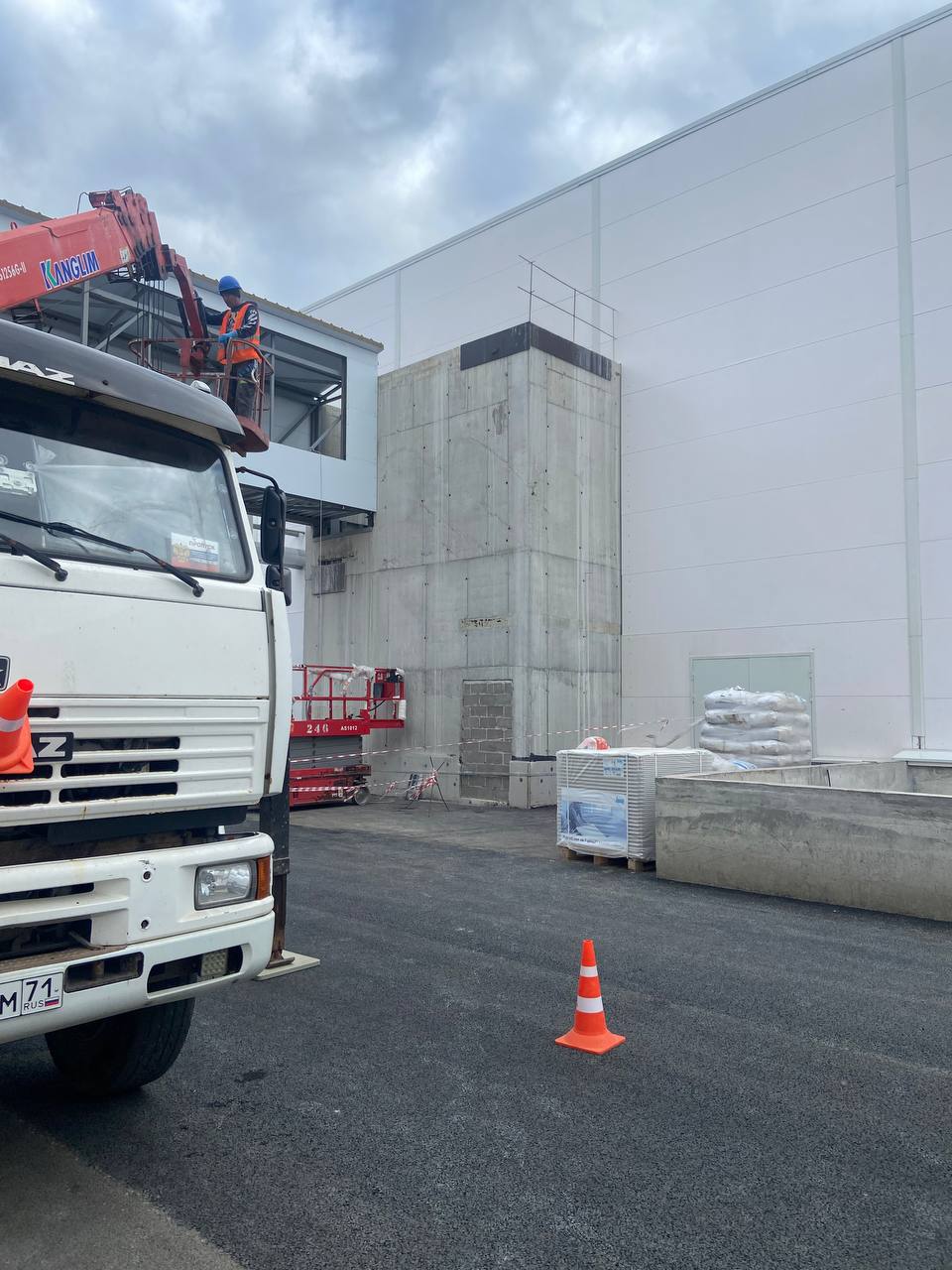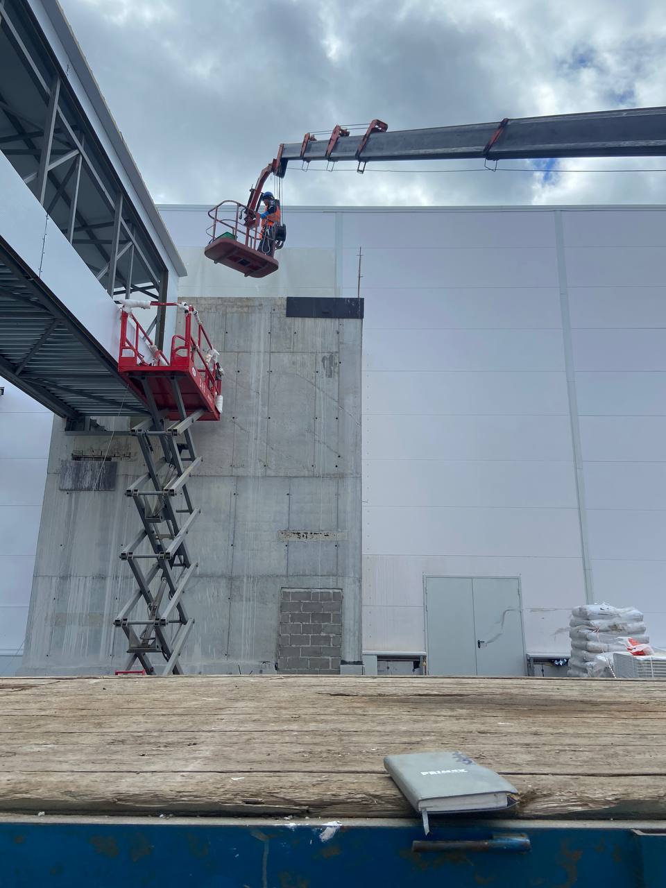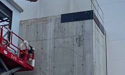 При выполнении работ столкнулись со стойкими послестроительными загрязнениями. Работы выполнялись с применением крана-манипулятора с пристегнутой люлькой.
